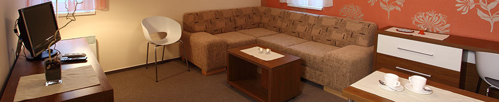 Red color dominates the apartment and it is on the groundfloor of the Hastrman pension. This apartment includes a bedroom, living room, kitchenette, a roll-door closet and a bathroom.